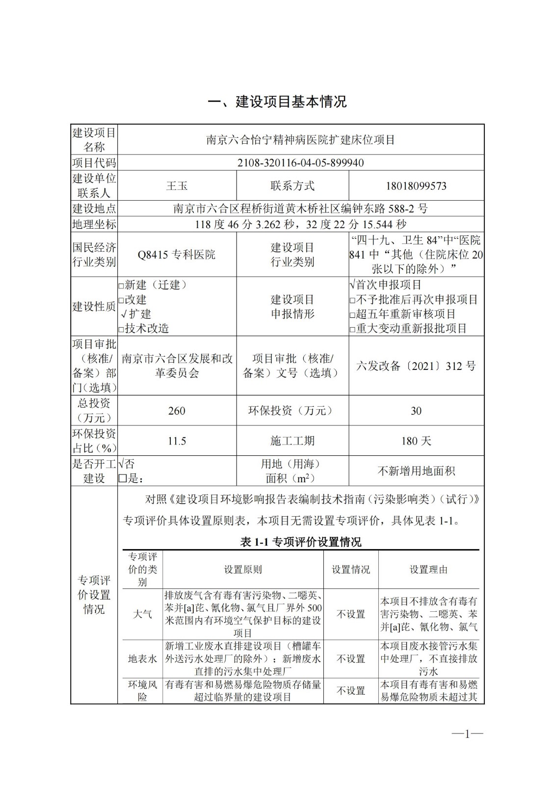 南京六合怡寧精神病醫(yī)院擴(kuò)建床位項(xiàng)目公示